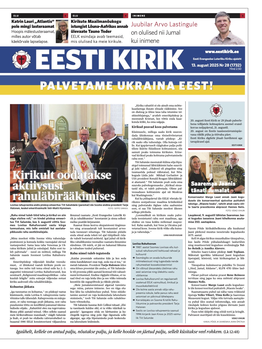 Ülevaade sellest, mida pakub oma lugejatele ajaleht Eesti Kirik 13. augustil Issanda aastal 2025