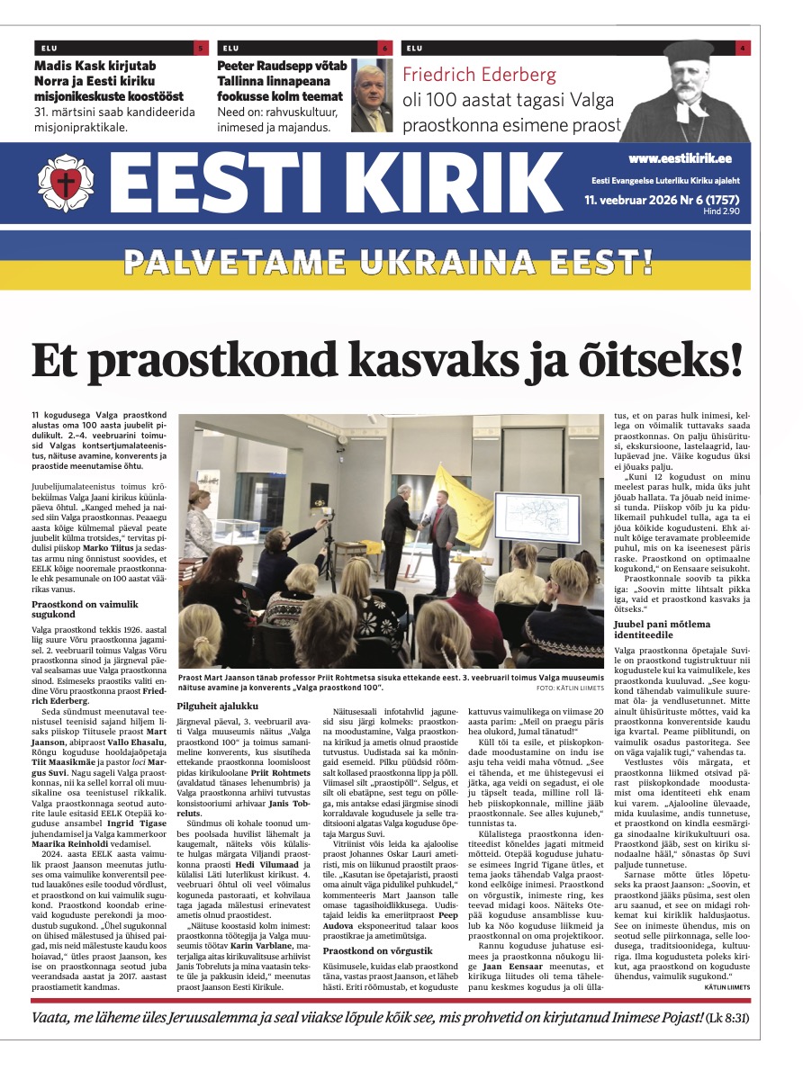 Ülevaade sellest, mida pakub oma lugejatele ajaleht Eesti Kirik 11. veebruaril Issanda aastal 2026
