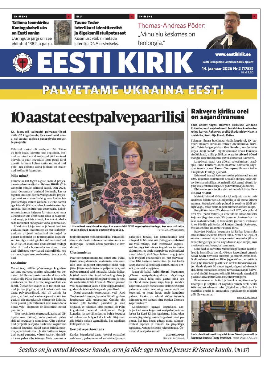 - Eesti Kirik 14. jaanuar 2026 Nr 2