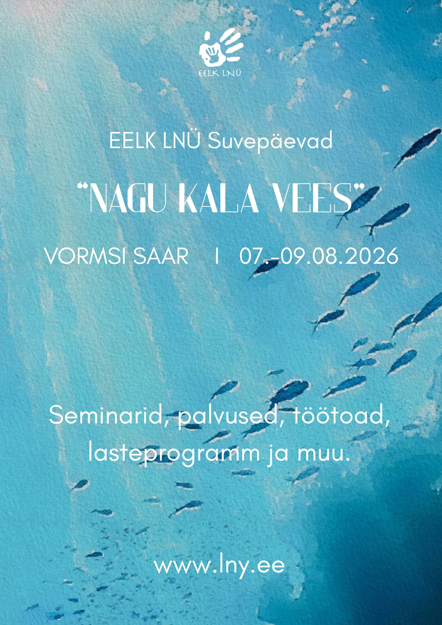 Avatud on registreerimine EELK Laste- ja Noorsootöö Ühenduse tänavustele suvepäevadele, mis toimuvad Vormsi Püha Olavi kogudusemajas. Tänavuse kokkusaamise teemaks on „Nagu kala vees” ning fookuses on uusvaimsuse ilmingud tänapäeval, Piibli õpetus eksiõpetuste kohta ja praktiline ettevalmistus koguduste laste- ja noortetöö tegijatele.